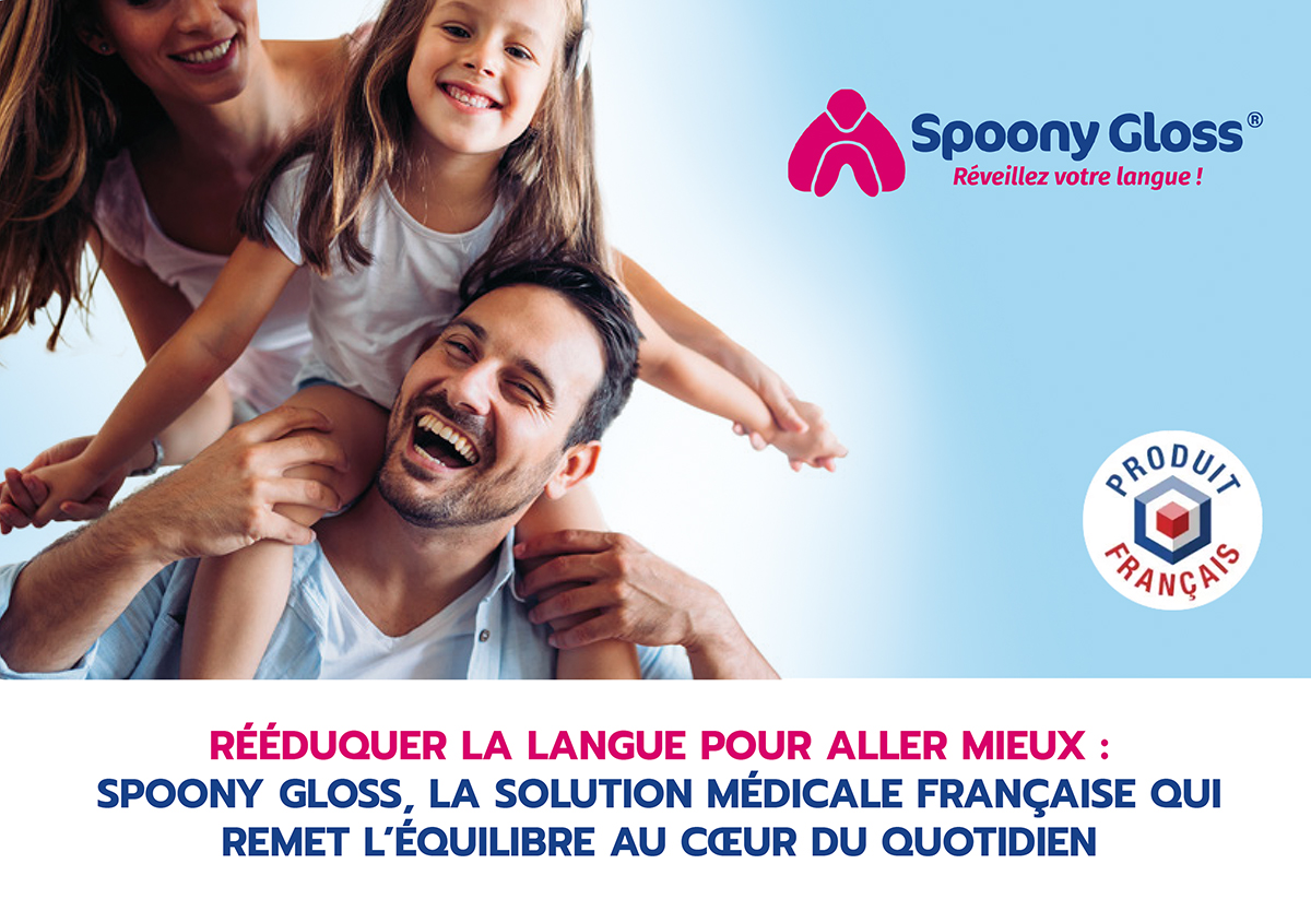 Respiration, sommeil, posture, mastication, élocution… la langue joue un rôle central trop souvent négligé. Mal positionnée, elle peut entraîner troubles du sommeil, douleurs cervicales, déséquilibres posturaux ou difficultés de phonation. Bien placée – haut contre le palais au repos – elle favorise la respiration nasale, l’équilibre musculaire et la stabilité du visage. Spoony Gloss® répond à ce besoin ignoré. Ce dispositif médical breveté, conçu par des professionnels de santé, guide la langue vers sa position naturelle grâce à un port quotidien de 15 à 30 minutes. Basé sur les principes de neuroplasticité, il aide à instaurer une nouvelle habitude, sans effort ni contrainte, à tout âge. Remettre la langue à sa place, c’est souvent remettre le corps en équilibre. |